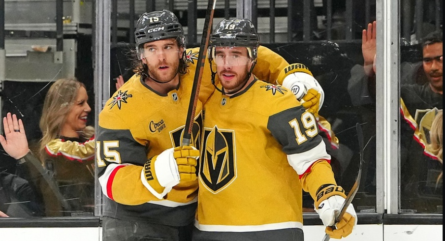 (5:19 — VGK Goal): The Knights tie it at 2-2 just over five minutes into the second on a delayed penalty. They enter the zone up a man while also catching Columbus at the end of a shift change. Mitch Marner gets a pass off to Smith, who fires from the left circle for his second goal of the night to knot it up.